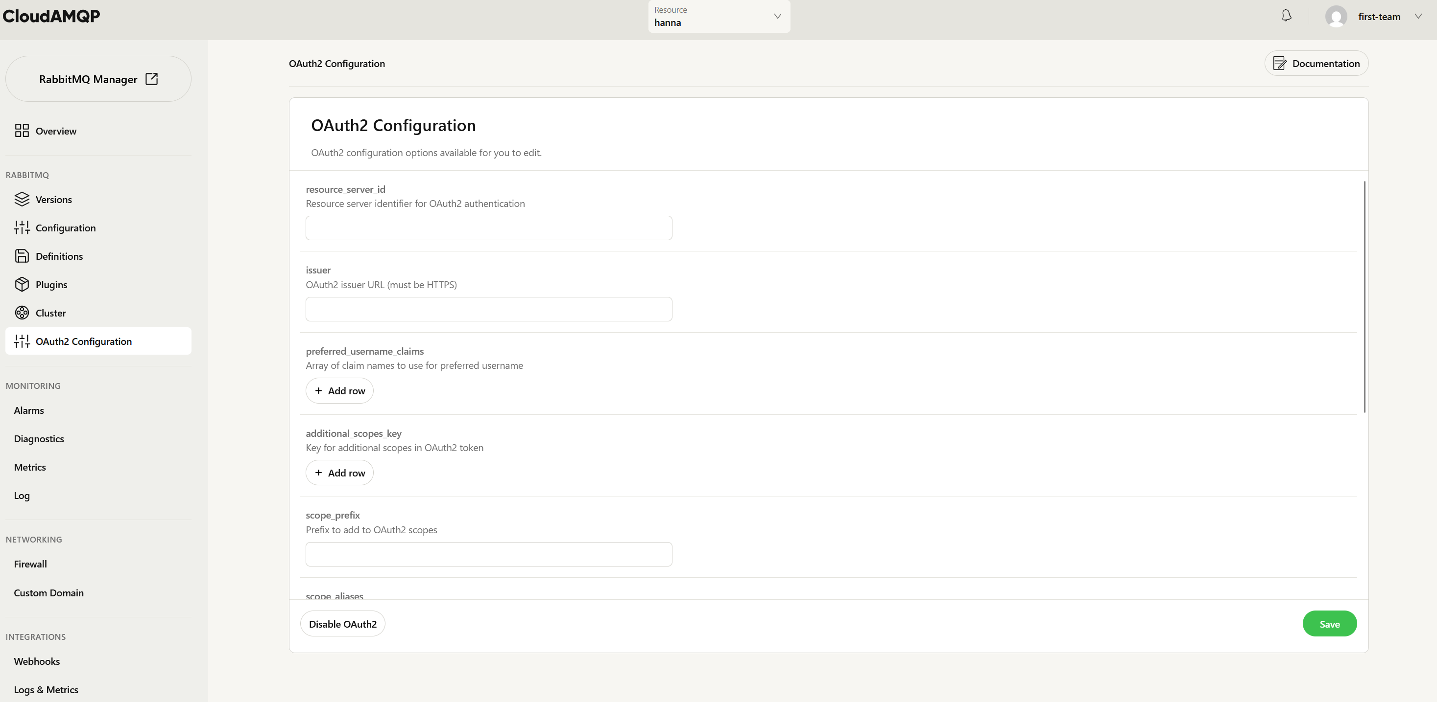 We're excited to announce that it's now possible to configure OAuth2 for your RabbitMQ clusters. This new feature gives you the freedom to set up and manage OAuth2 authentication directly, without requiring assistance from our support team.